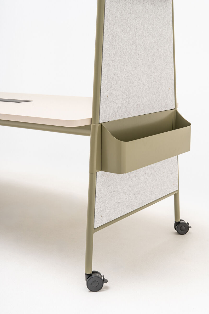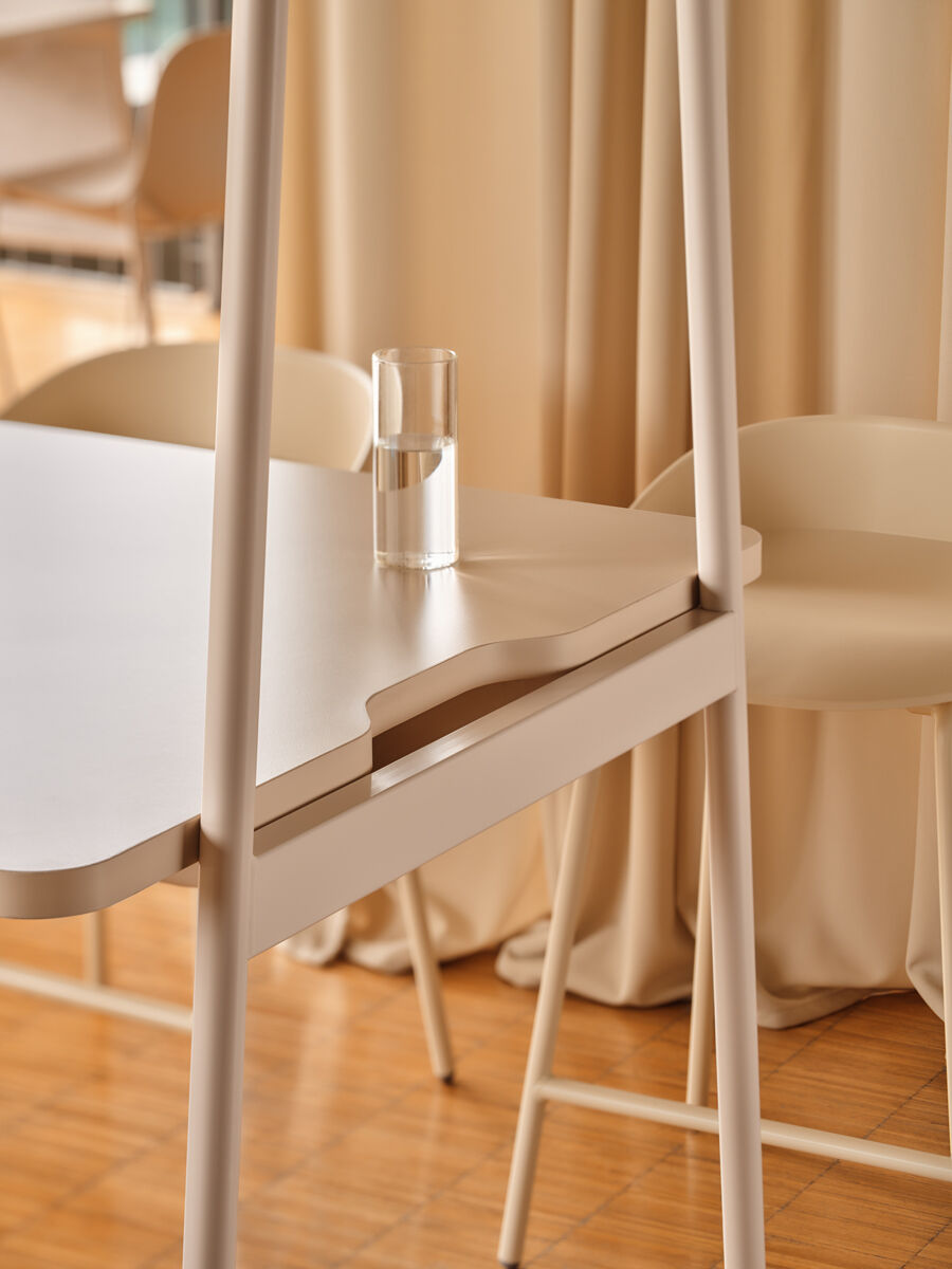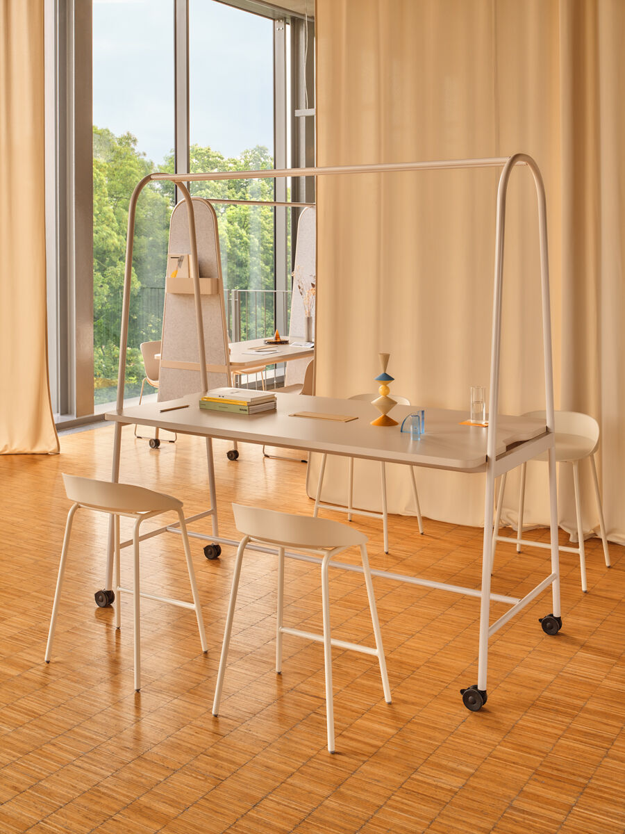 Perfectă pentru birouri dinamice, spații educaționale, zone de workshop sau cantine, masa înaltă Ampla permite o utilizare versatilă, fie pentru întâlniri rapide, fie pentru momente de relaxare. Datorită roților integrate, masa poate fi mutată cu ușurință, iar structura sa robustă permite adăugarea de accesorii funcționale precum ghivece metalice, suport pentru monitor, coșuri de depozitare sau panouri PET din fetru.