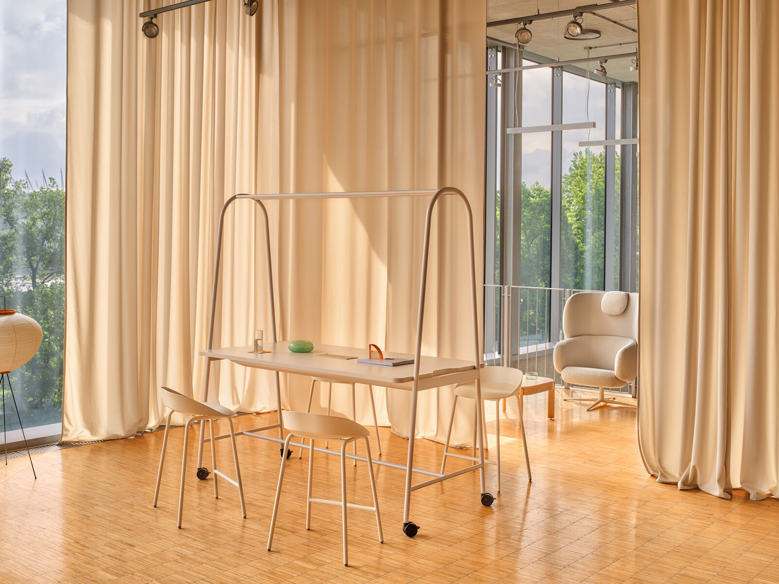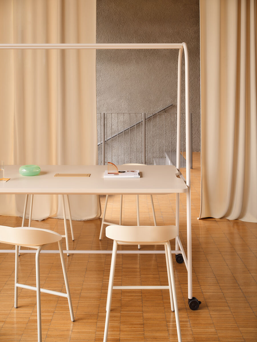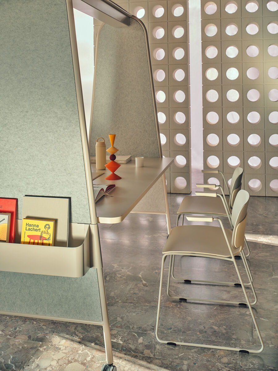 Perfectă pentru birouri dinamice, spații educaționale, zone de workshop sau cantine, masa înaltă Ampla permite o utilizare versatilă, fie pentru întâlniri rapide, fie pentru momente de relaxare. Datorită roților integrate, masa poate fi mutată cu ușurință, iar structura sa robustă permite adăugarea de accesorii funcționale precum ghivece metalice, suport pentru monitor, coșuri de depozitare sau panouri PET din fetru.