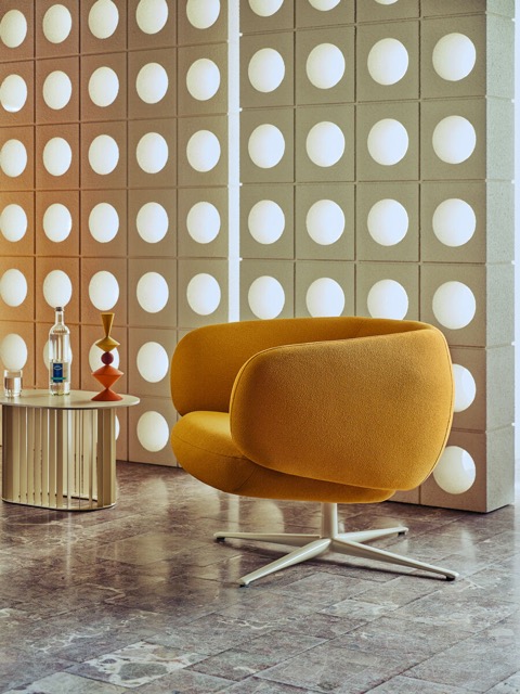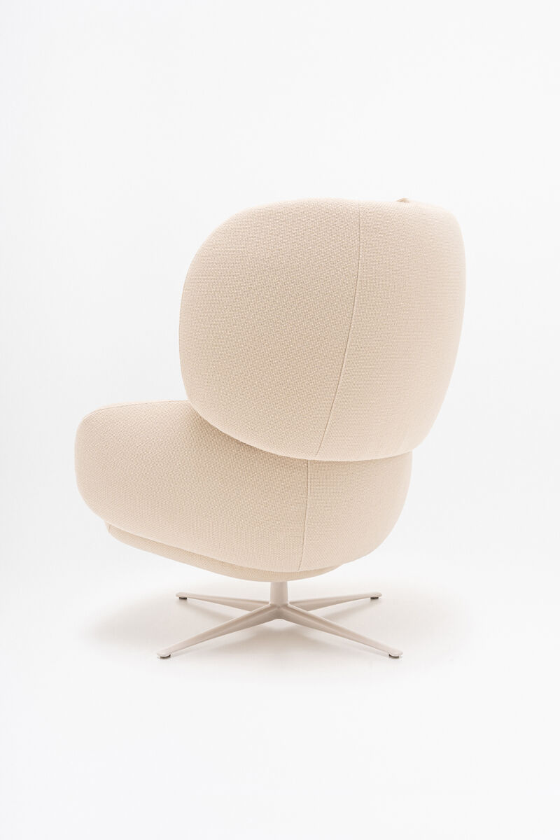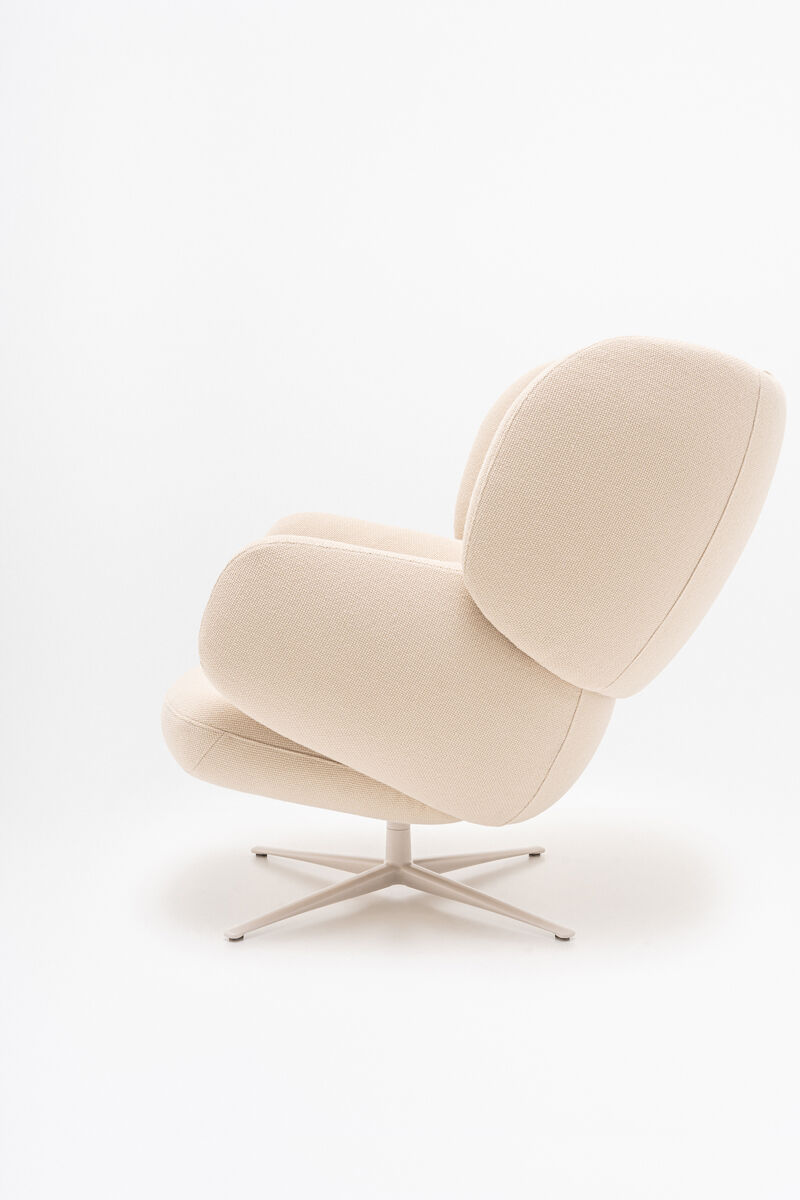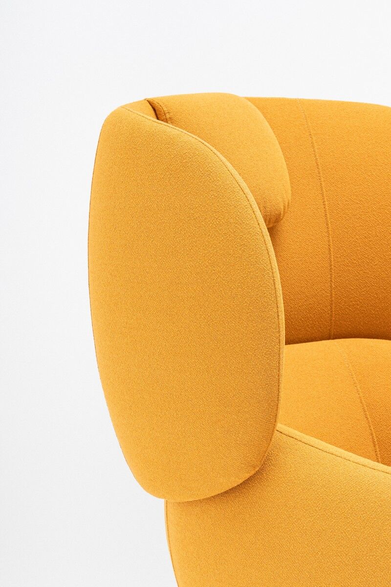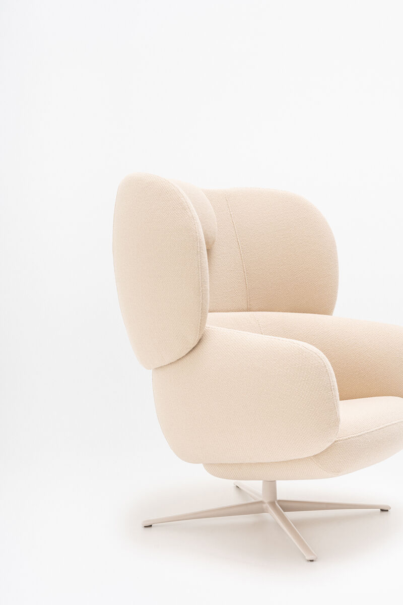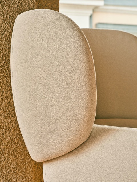 Contrastul dintre forma moale, tapițată, și baza metalică conferă fotoliului un caracter modern și permite integrarea acestuia atât în interioare contemporane, cât și în spații cu amenajări mai clasice.