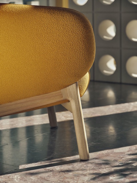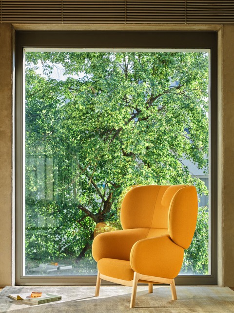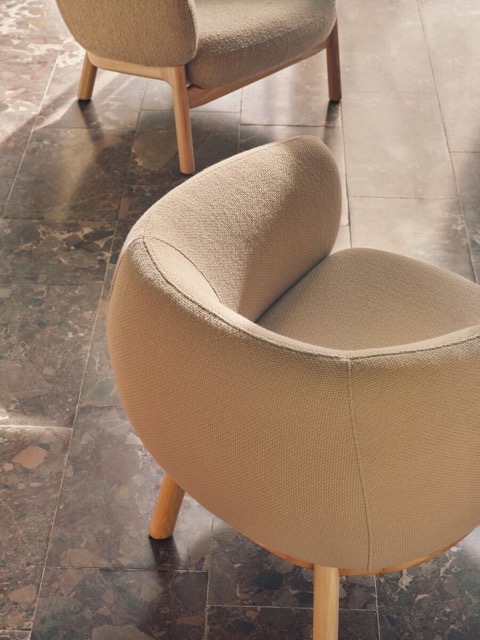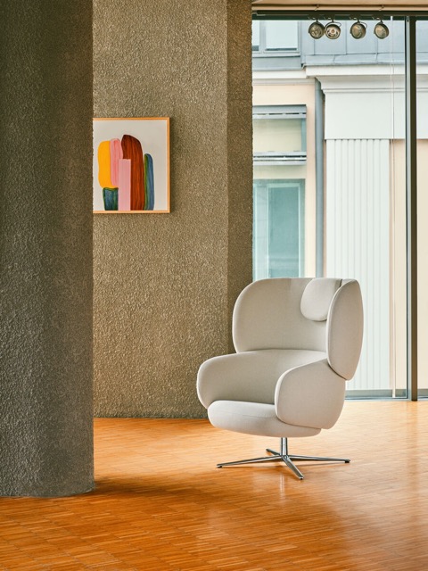 Forma fotoliului Grand Grace se armonizează cu celelalte scaune și fotolii Grace, permițând un aranjament coerent al spațiului