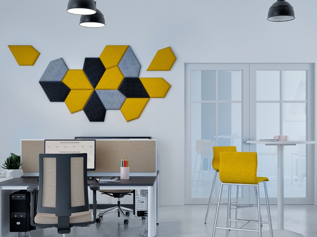 Transformă complet interiorul cu panourile acustice pentru perete, care îmbină designul impecabil cu performanța acustică. Folosește panourile fonoabsorbante de perete pentru a elimina zgomotul și a crea un mediu liniștit, fără a compromite estetica. Cu forme și dimensiuni variate, poți experimenta modele creative și unice, aducând o notă personalizată în orice încăpere. Panourile noastre versatile pentru pereți combină estetica cu utilitatea, ajutând la eliminarea zgomotelor nedorite din birou. Cu ajutorul tehnologiei avansate de izolare fonică, oferim angajaților un mediu de lucru optim.