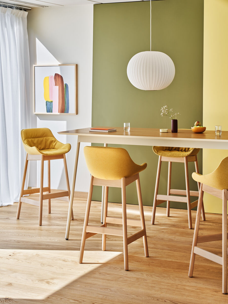 Baza din lemn adaugă o notă de căldură, făcându-l ideal pentru spații de luat masa și lounge, precum holurile hotelurilor și cafenelele, dar și pentru interioare rezidențiale.