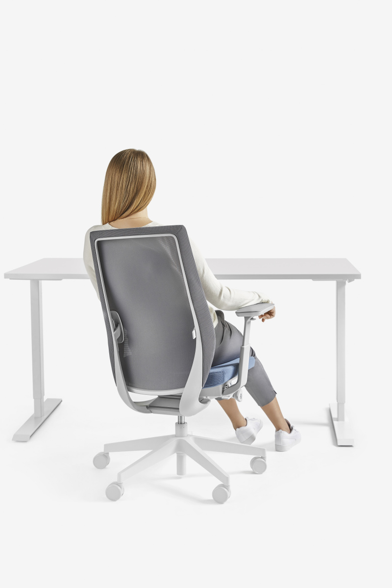 • Înclinare șezut înainte – Facilitează o poziție activă, sprijinind coloana în sarcinile care necesită apropierea de birou.