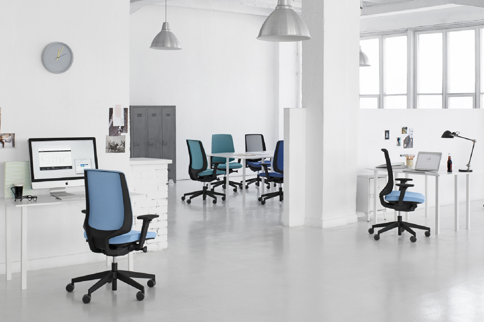 Scaunul este disponibil cu spătar tapițat, iar gama de culori pentru baza scaunului permite adaptarea la orice stil de amenajare.