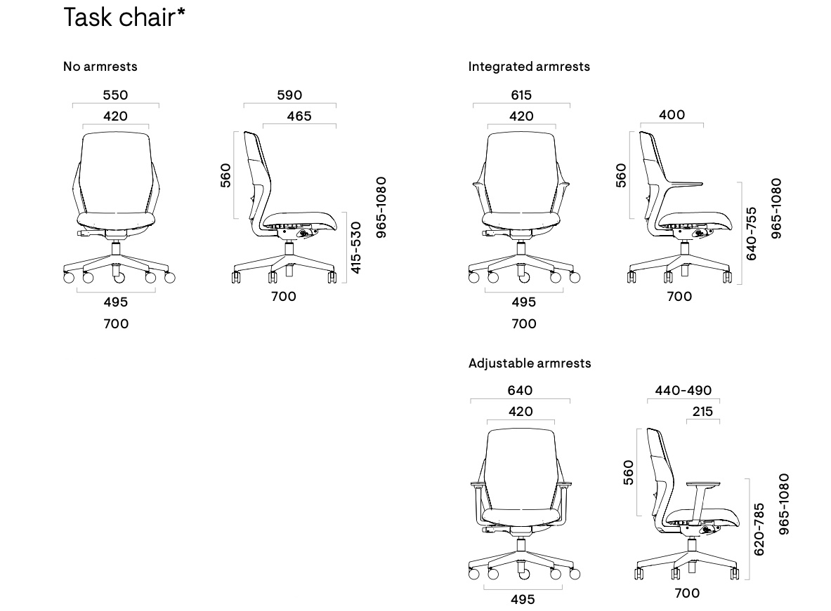 • Înălțime scaun cu brațe fixe: 640÷755mm