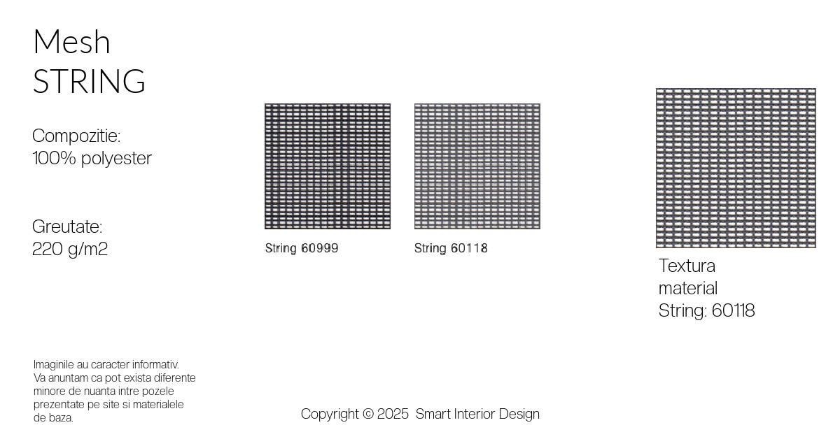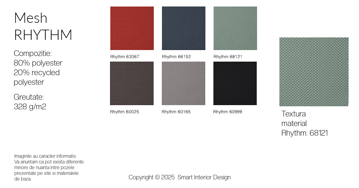 ● Plasă respirabilă pentru spătar – spătarul este acoperit cu plasă tip String, Runner sau Rhythm, care permite o bună circulație a aerului și oferă confort termic pe durata utilizării îndelungate.