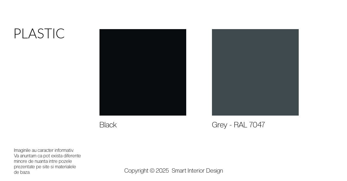 ● Spătar flexibil: disponibil în varianta din plastic de culoare neagră sau gri închis.
