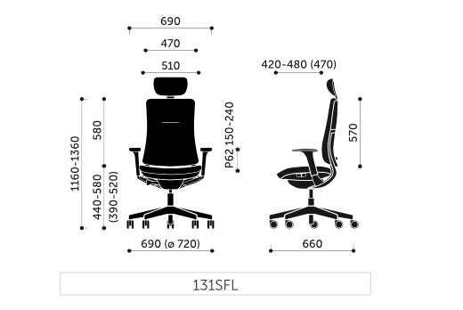 Mecanism Synchro SFL: reglare a înălțimii șezutului, mecanism synchro cu ajustarea rezistenței spătarului în funcție de greutatea utilizatorului, funcție de alunecare a șezutului, înclinare suplimentară șezut/spătar. Blocabil în 5 poziții.