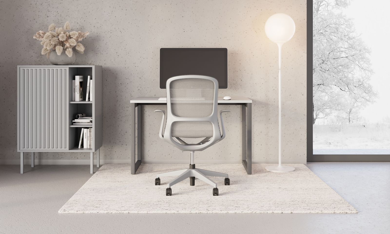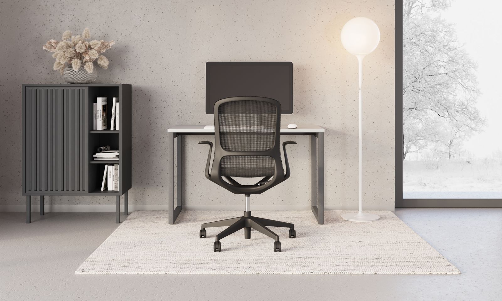 Scaunul Airi adoptă un concept monocromatic modern, în care baza în stea, plasa, cadrul și brațele sunt realizate în aceeași culoare. Rezultatul este un aspect unitar, elegant și contemporan.