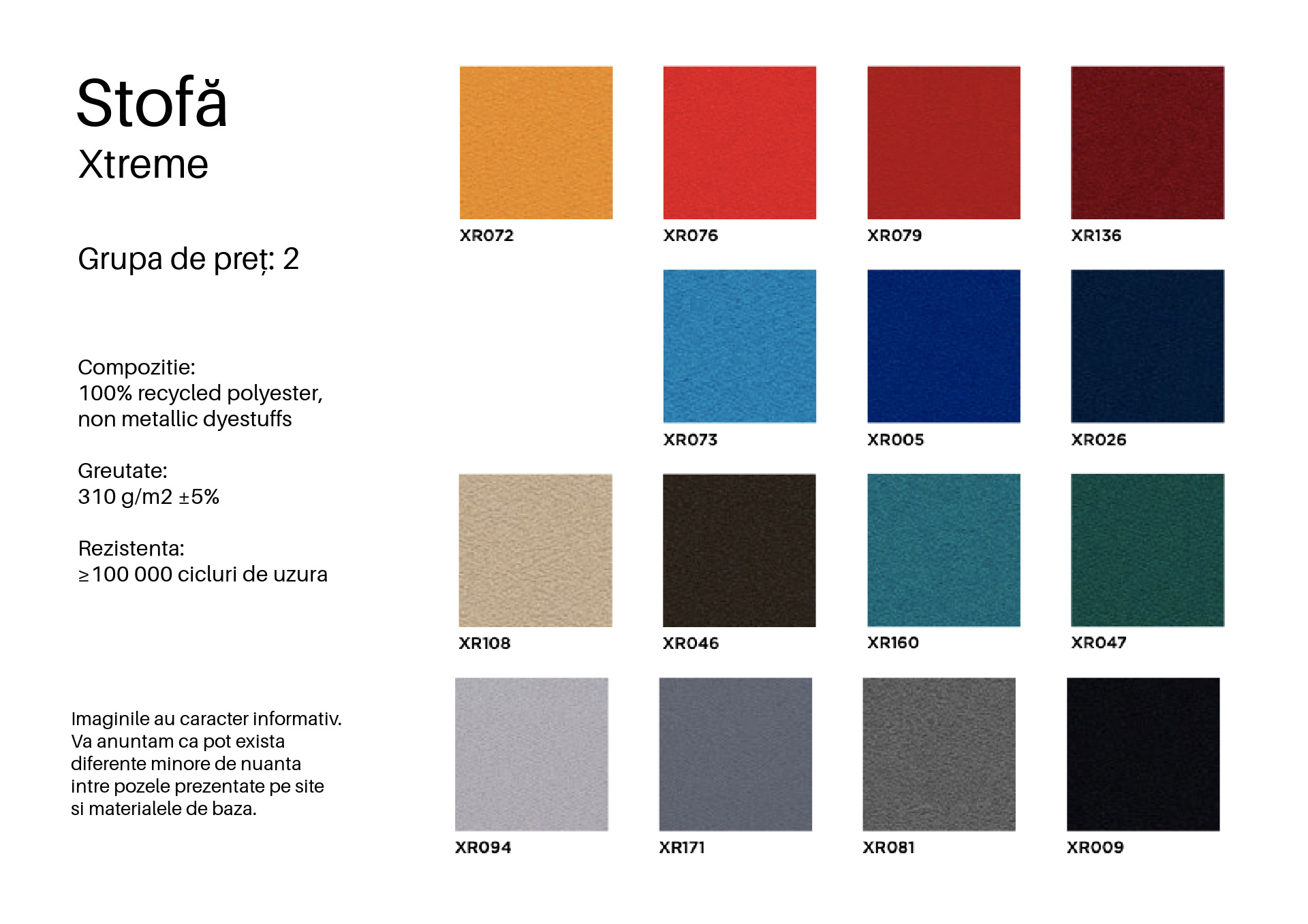 • Tapițerie: disponibilă într-o varietate de culori.