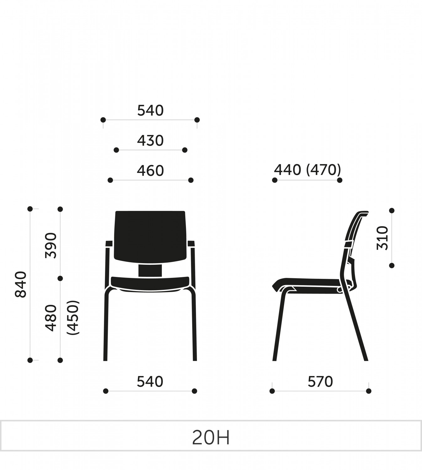 Opțional, scaunul poate fi echipat cu brațe fixe din structură metalică cu pad-uri dinpolipropilenă neagră. Scaunele pot fi stivuite până la 4 bucăți, ceea ce permite economisirea spațiului și flexibilitate în organizarea sălilor.