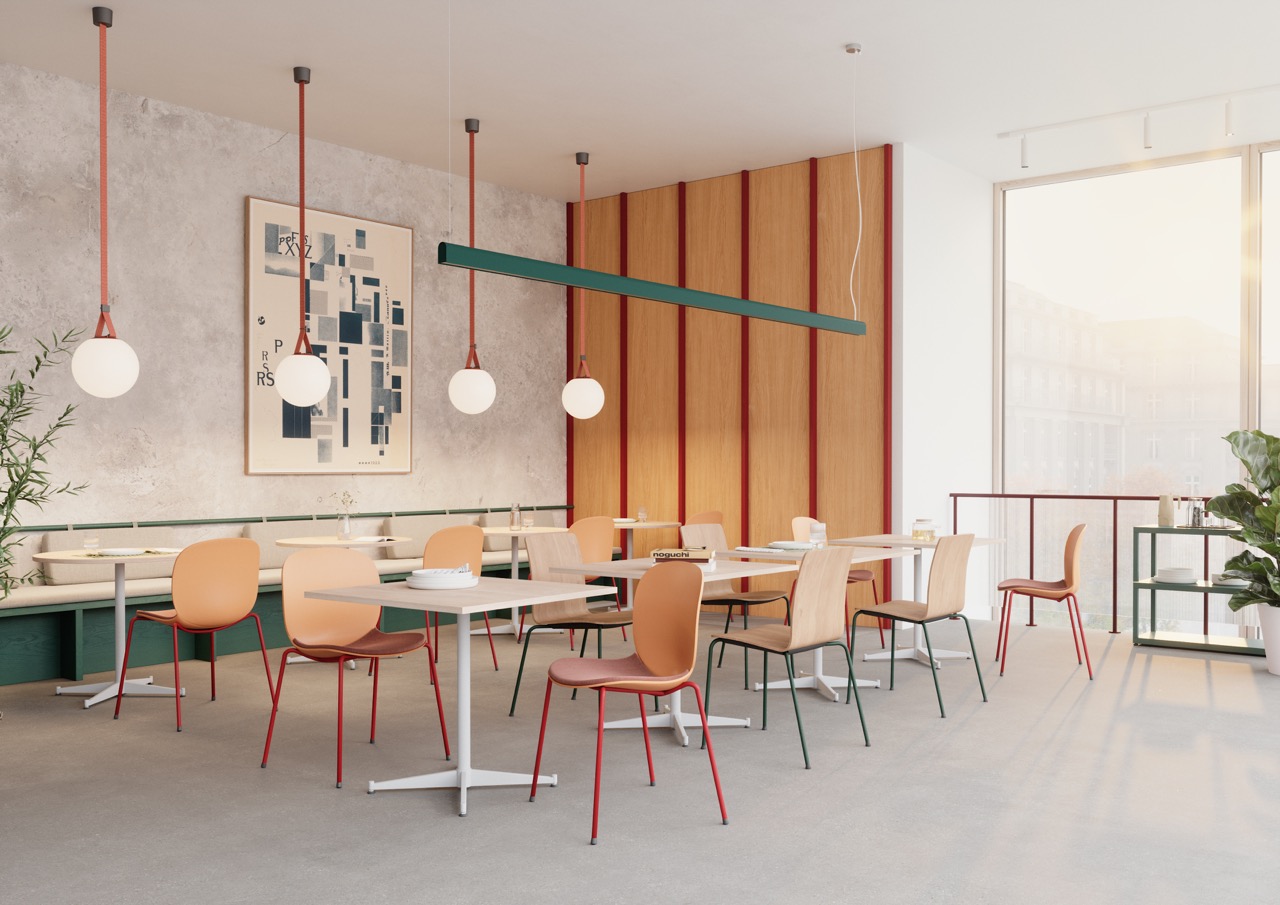 Scaunul Com se remarcă printr-o combinație echilibrată de lejeritate, durabilitate și versatilitate, fiind conceput pentru a răspunde eficient nevoilor spațiilor moderne. Geometria rafinată a carcasei șezutului oferă un nivel ridicat de confort, păstrând totodată un design curat și contemporan.