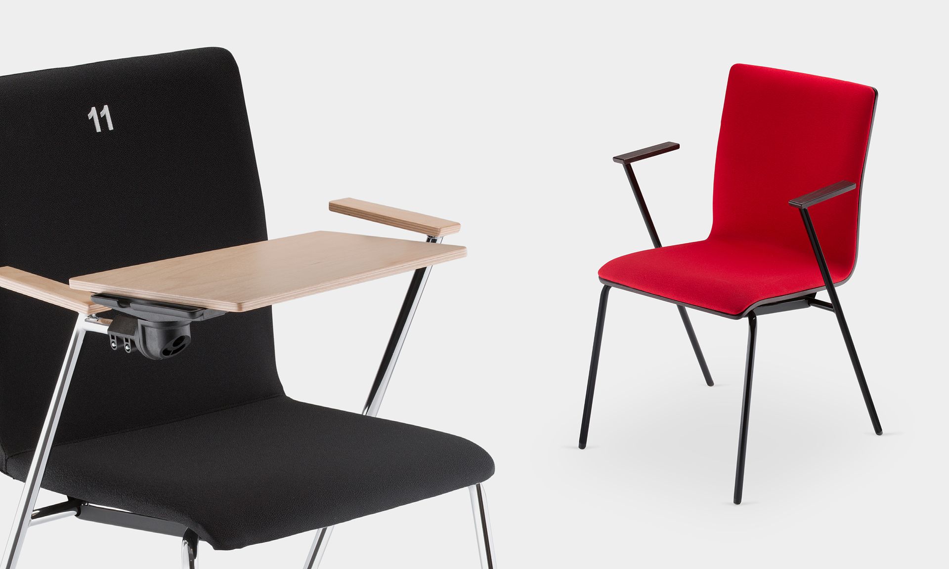 Scaunele Fen 4L Arm A Plus pot fi suprapuse în număr de patru bucăți pentru economisirea spațiului.