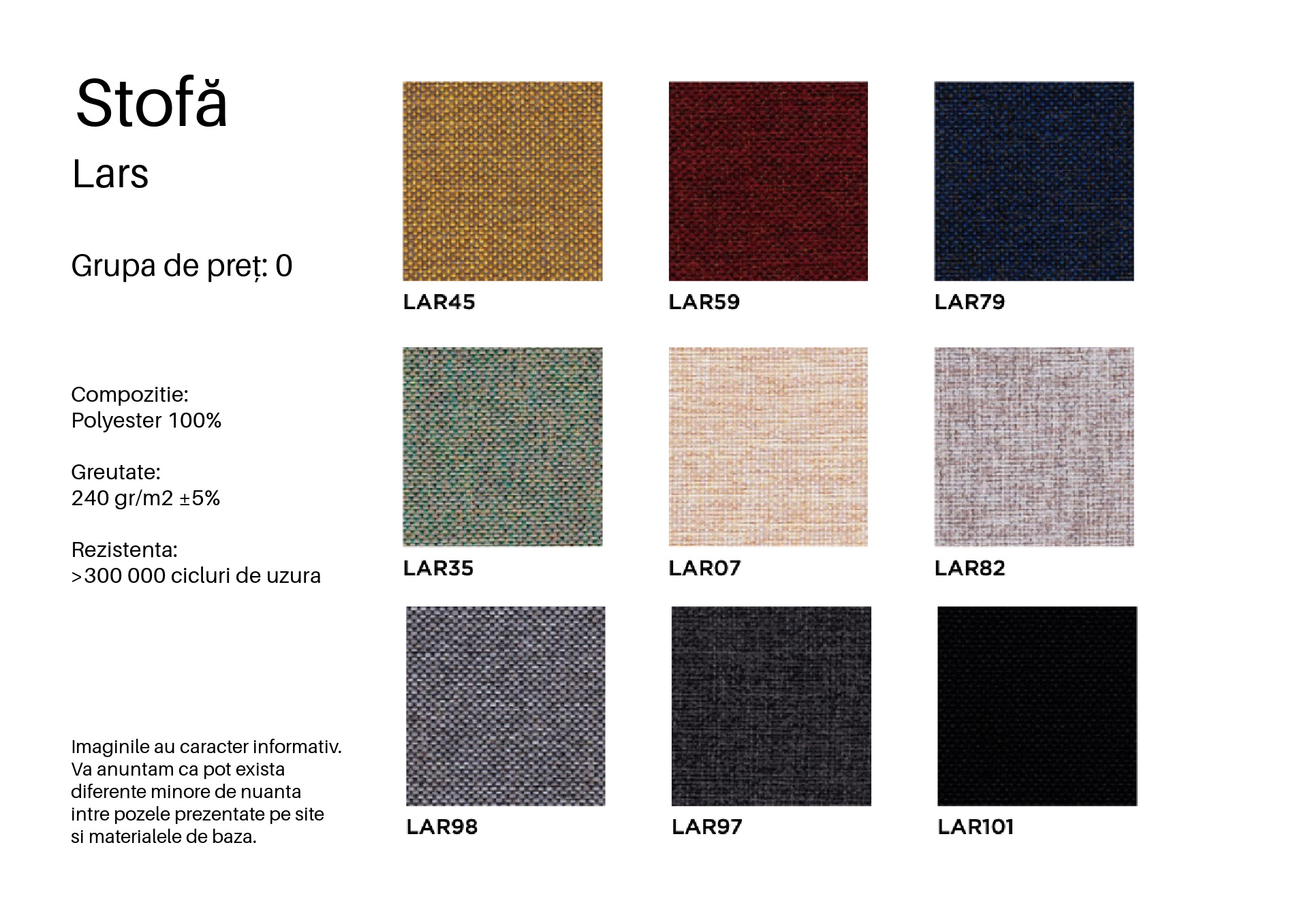Șezut tapițat confortabil: Disponibil în stofă sau piele ecologică, într-o varietate de culori, pentru un confort sporit.