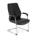 Scaunul de vizitator Sonata CF/LB se remarcă prin eleganța și confortul său, fiind ideal pentru diverse spații de lucru sau săli de conferințe. Acest scaun este construit pe o structură metalică cromată, care îi conferă atât durabilitate, cât și un aspect modern. Șezutul este tapițat cu piele ecologică disponibilă într-o varietate mare de culori, oferind posibilitatea de a-l integra armonios în orice decor.