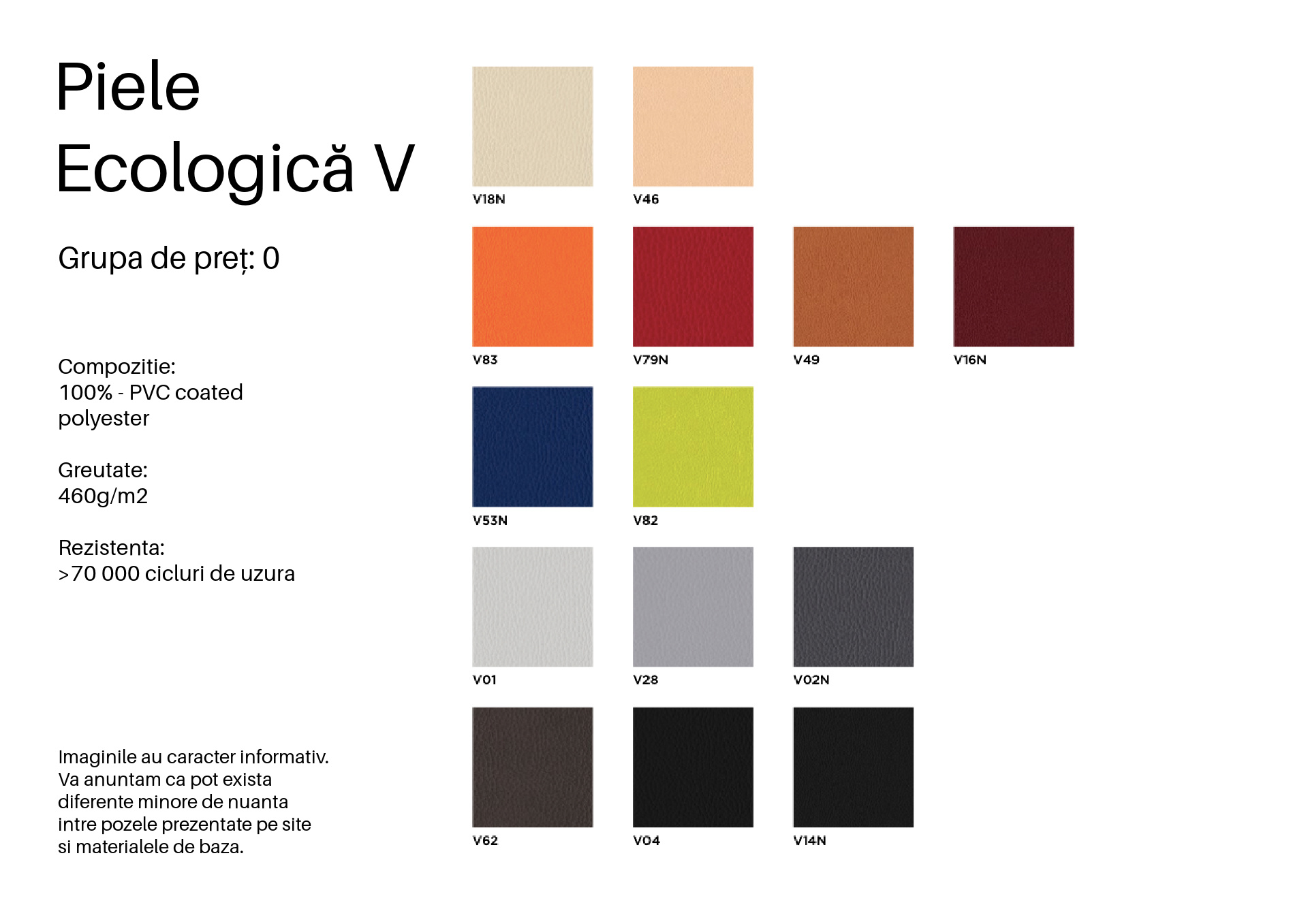 • Sezut și spătar tapitate cu material textil sau piele ecologică în diverse culori.