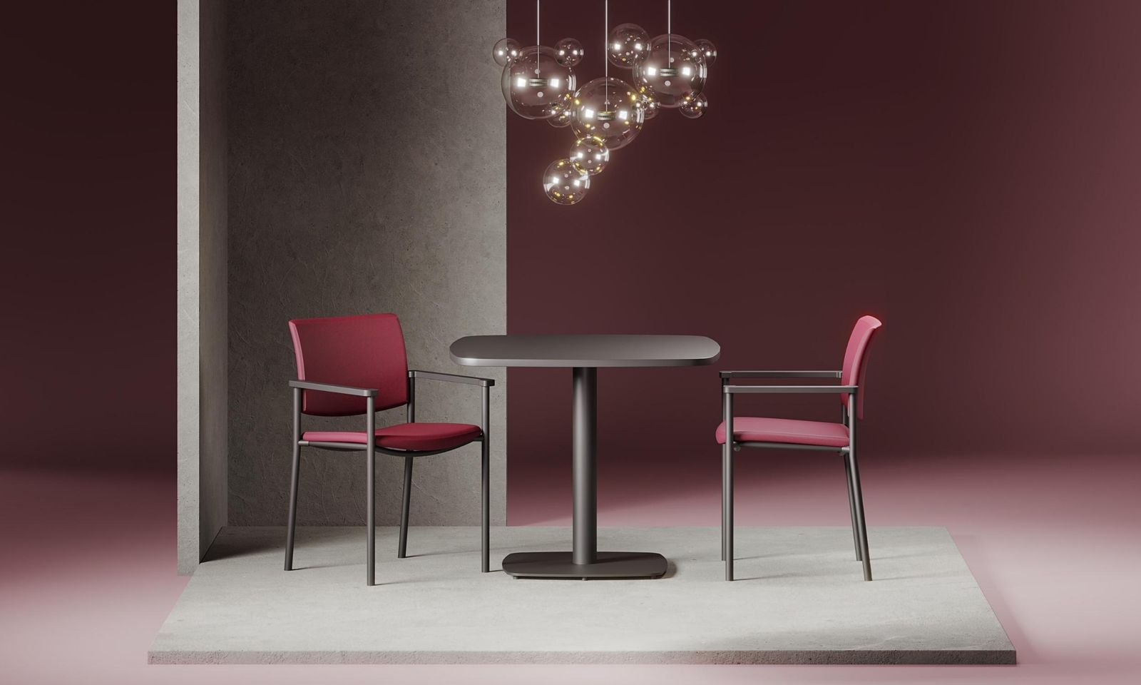 Scaunul de vizitator Zen Arm combină eleganța cu funcționalitatea, având o structură metalică disponibilă în finisaje negru, aluminiu sau cromat.