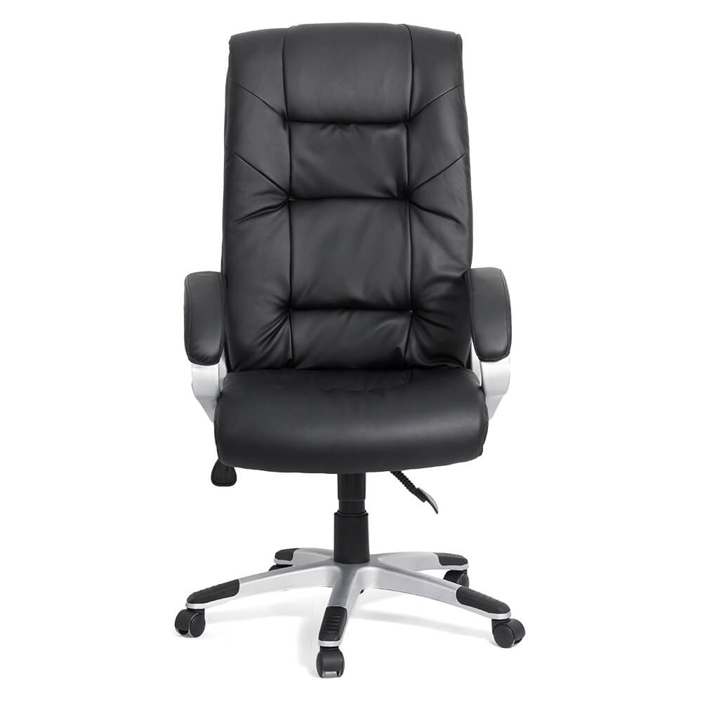 Fața este realizată din piele ecologică, plăcută la atingere și ușor de întreținut, iar brațele din oțel cromat, cu inserții din piele ecologică, adaugă un plus de eleganță și rafinament. Baza tip stea din polipropilenă dură, echipată cu cinci roți, asigură stabilitate și mobilitate sigură în timpul utilizării.