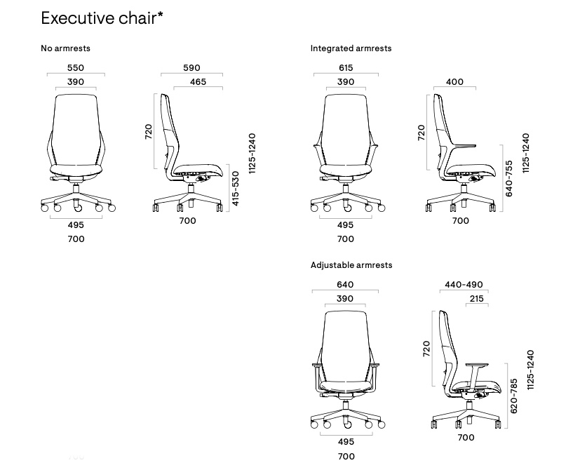 Înălțime scaun cu brațe fixe: 640÷755mm