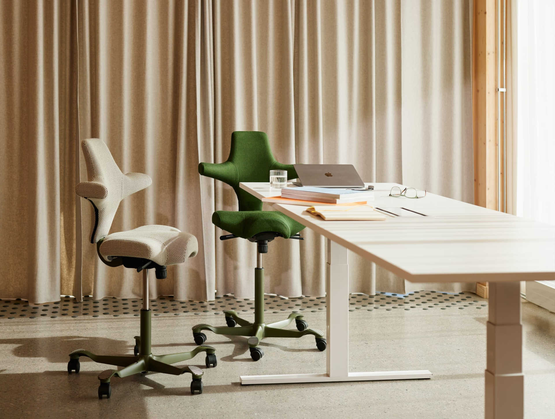 Designerul norvegian Peter Opsvik a creat HÅG Capisco 8106 în 1984 pentru a redefini modul de a sta la birou. În locul unei poziții fixe, scaunul încurajează mișcarea și variația posturii, transformând fiecare zi de lucru într-o experiență activă și sănătoasă. Astăzi, HÅG Capisco 8106 este unul dintre cele mai iconice scaune de birou din Europa.