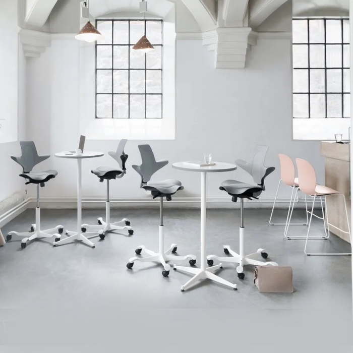Scaunul HÅG Capisco 8010 este un model ergonomic de birou, creat pentru a susține mișcarea naturală a corpului și pentru a oferi libertate totală de poziționare. Inspirat de postura călărețului, designul său unic cu șezut în formă de șa încurajează o postură activă, menținând echilibrul și confortul chiar și în utilizarea de lungă durată. Este ideal pentru birouri moderne și spații de lucru dinamice.