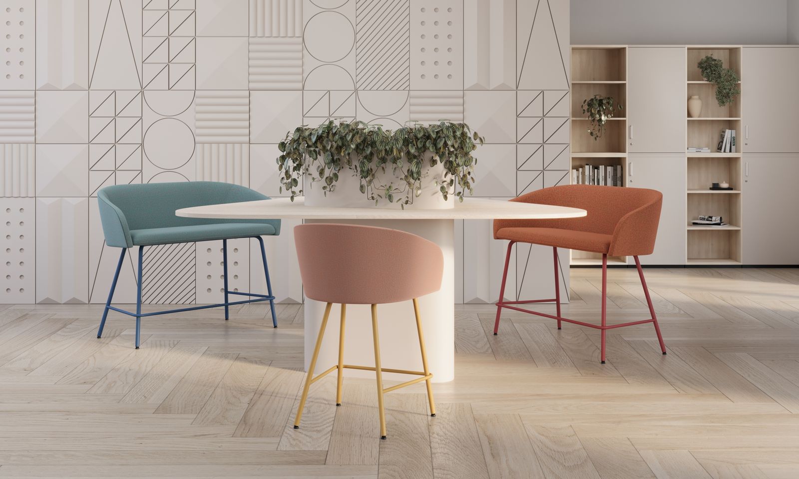 Datorită designului său versatil, scaunul Naudu Low se integrează ușor în diverse concepte de amenajare, de la spații corporate la interioare moderne și creative.