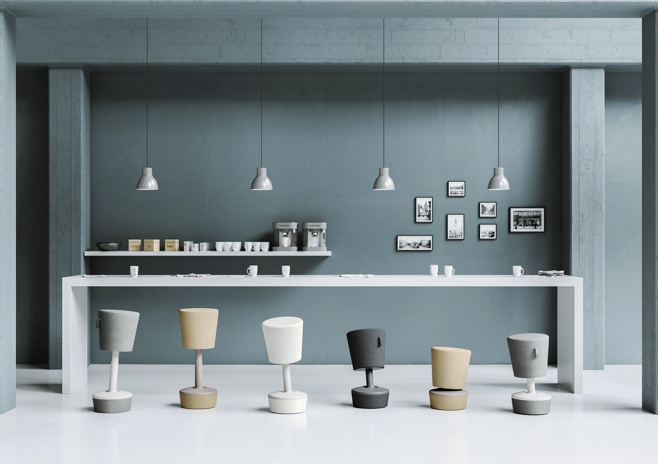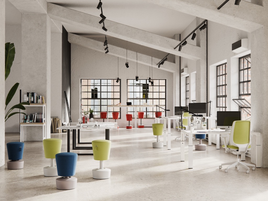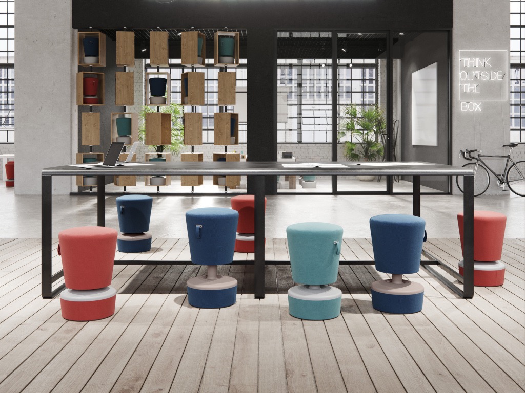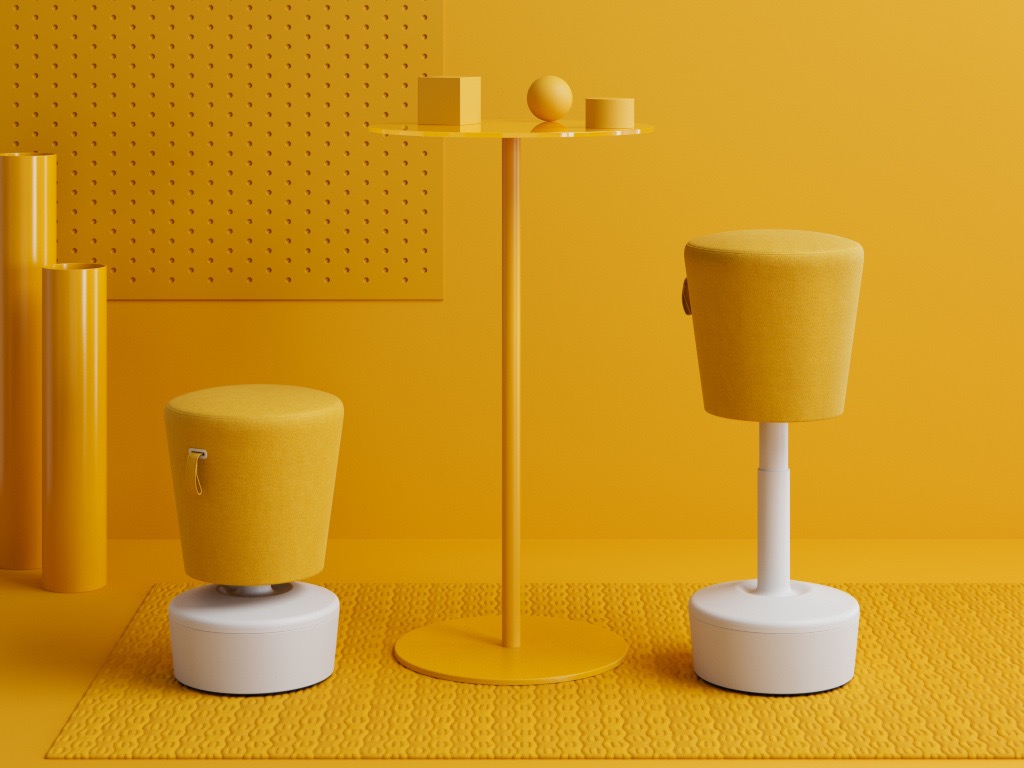 Scaunul Mickey, creat de studioul ITO Design, este proiectat să răspundă nevoilor spațiilor de lucru moderne și flexibile. Conceput pentru a susține activitatea în poziție șezândă, semi-șezândă sau în picioare, Mickey încurajează mișcarea naturală a corpului și menține musculatura activă pe întreaga durată a zilei. Este perfect pentru spații dinamice, care își schimbă frecvent configurația în funcție de necesități.